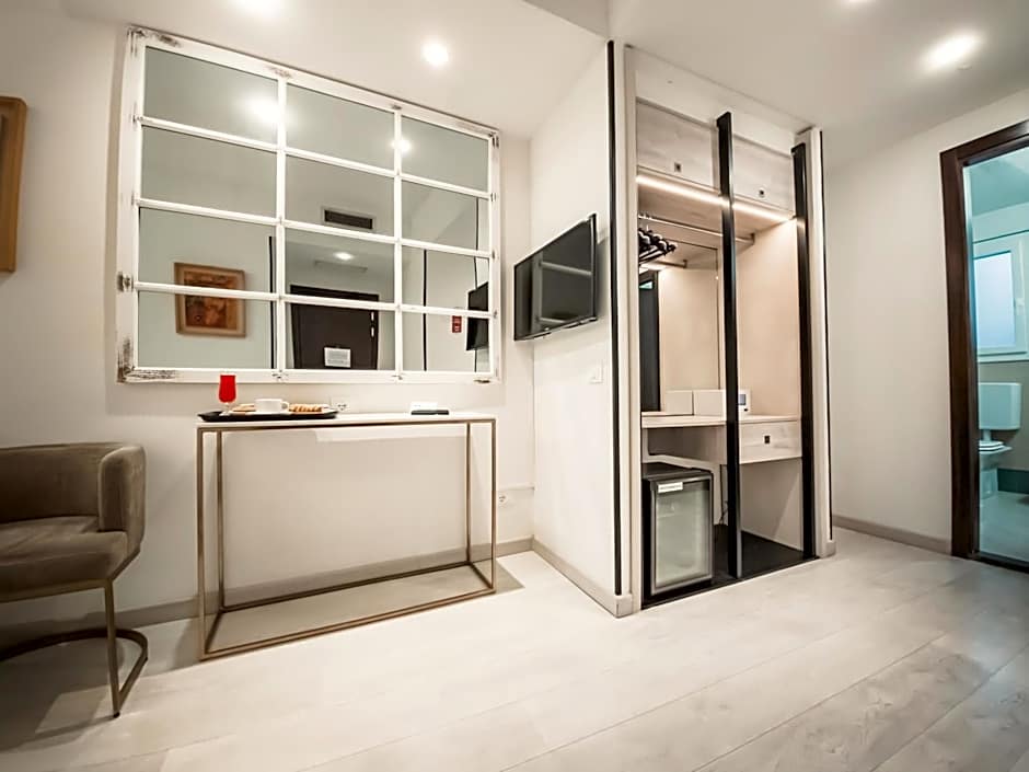 Air-conditioned room with free WiFi, a small double bed with an orthopedic mattress, parquet floors, and a satellite TV with free football and cinema channels. It also includes a safe, telephone and alarm clock.